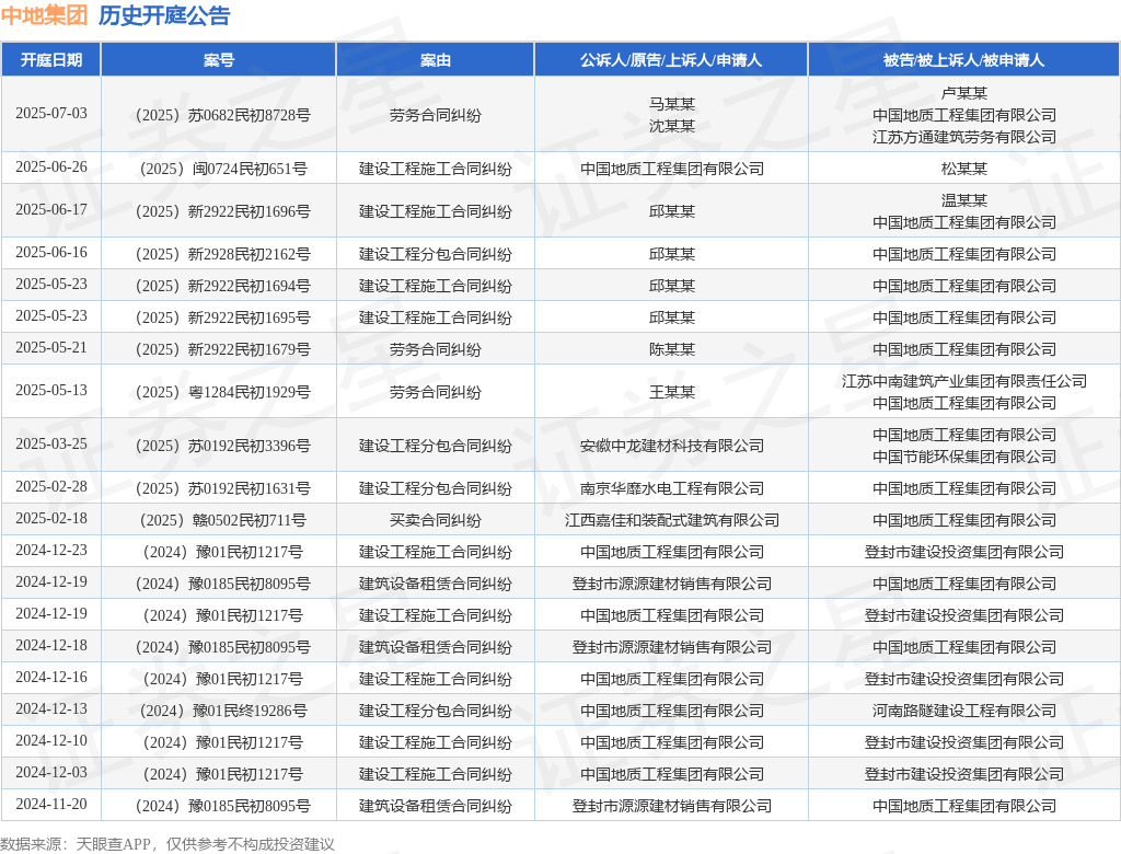 本站消息,根据天眼查APP显示,近日公布了一则中国地质工程集团有限公司作为被告/被上诉人的开庭公告,详细内容如下: